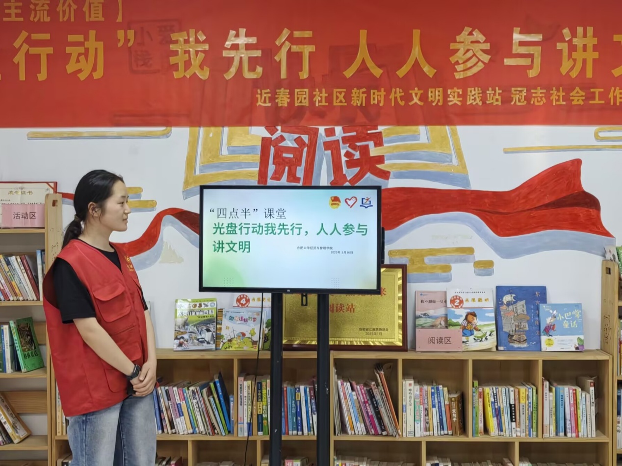 5月16日,經濟與管理學院的志愿者們懷揣著熱情與擔當,走進綠地濱湖國際花都社區,開展了一場別開生面的“‘光盤行動’我先行,人人參與講文明”志愿服務活動。活動將知識科普與趣味實踐緊密結合,為社區的小朋友們帶來了一場生動的節約糧食教育之旅,讓“光盤”理念在幼小的心靈中生根發芽。