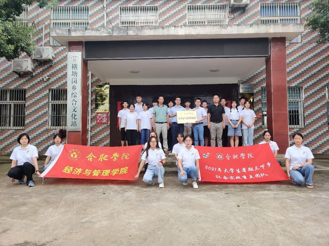 2021年7月19日下午5時,合肥學院大學生社會實踐基地掛牌儀式于六安市金安區橫塘崗鄉文化廣播站舉行,六安市金安區橫塘崗鄉黨委副書記張琨、黨委委員蘇承陽、橫塘崗鄉文化廣播站站長王曉波、合肥學院經管學院團委負責人程越岳參加儀式。