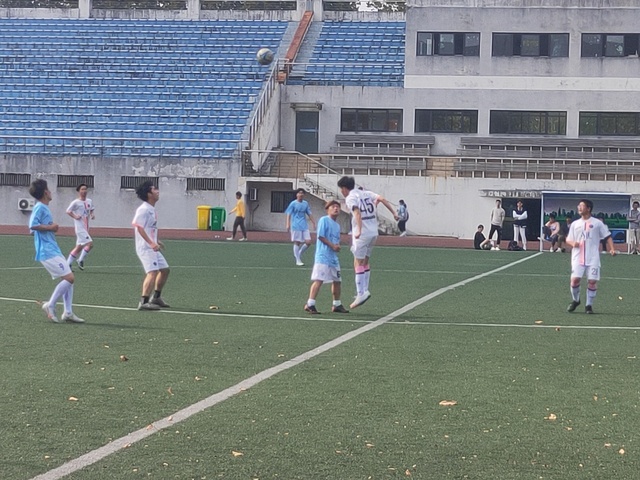 賽前,同學們精神抖擻,摩拳擦掌,做好充足準備。比賽伊始,身著天藍色隊服的經濟系隊員與身著白色隊服的生物系隊員在綠茵茵的草地上奮力奔跑,雙方球員便迅速進入狀態大家配合默契,調整策略,雙方你來我往,互不相讓。比賽開場不到五分鐘,對手的犯規為經濟系帶來了一個禁區外任意球,經濟系隊員一腳遠射打破了比賽僵局,十分鐘以后,生物系隊員配合默契,殺入我方禁區抽射扳平比分。半場休息后,雙方熱情不減,幾乎和上半場一樣的位置,我院又獲得一個任意球,將比分改寫成2:1領先。隨后的比賽中,我院奉獻了三次精彩的突破進球,最終我院以5:1取得此次比賽勝利。