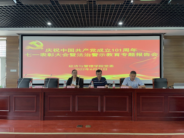 2022年6月21日下午14點(diǎn)30分,經(jīng)濟(jì)與管理學(xué)院在合肥學(xué)院一期六棟一樓西多功能報(bào)告廳舉辦慶祝中國(guó)共產(chǎn)黨成立101周年“七一”表彰大會(huì)。此次表彰大會(huì)由經(jīng)濟(jì)與管理學(xué)院黨委副書記張永軍主持,經(jīng)濟(jì)與管理學(xué)院黨員領(lǐng)導(dǎo)干部、黨委委員、受表彰的師生黨員和黨支部書記、各黨支部師生黨員代表、無(wú)黨派人士代表出席了大會(huì)。