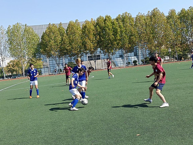 賽前,雙方球員提前到場積極進行熱身,在操場中央聚集加油打氣隨著裁判一聲哨響,比賽開始。雙方激烈對抗,周旋博弈,不斷轉換攻守。一次華麗轉身和閃躲運球牽動著觀眾的心。場下觀眾無一不為之吶喊。上半場比賽進入半程,人大隊突然攻勢迅猛,直沖球門,成功拿到比賽第一球。我院立刻調整心態,沉著應對,嚴防死守,人大幾次進攻被我院隊員成功攔截。一聲哨響,上半場比賽到此結束。經過短暫休息和戰略調整,我院重整旗鼓,兩隊交換場地再次上場。第二場比賽開始,雙方球員鼓足干勁,猛烈進攻。人大因拿下第一球士氣大增,接連拿下三球。場下,觀眾熱情歡呼,吶喊助威。我院抗下重壓,愈挫愈勇,配合更加默契球員們奮力攔截對手,接力運球,踢出的足球如流星一般劃出完美弧線,直奔對方球門,最終拿下一分。比賽最后雙方比分1:4,經管隊不幸落敗。