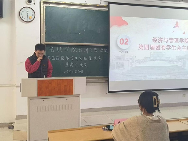 11月20日,合肥學院經濟管理學院第五屆團委學生會暨成立大會于一期五棟101教室順利舉行。經濟與管理學院黨委副書記夏丹青、經濟與管理學院團委書記姚璇、經濟與管理學院第四屆成員以及第五屆學生會全體成員參加此次大會。