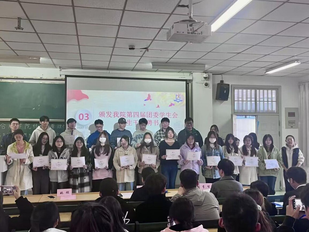 緊接著我院第四屆團委學生會部長級成員、主席團成員依次上臺,領取聘書。