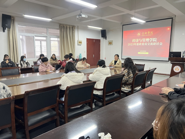 2023年12月14日,經(jīng)濟(jì)與管理學(xué)院于一期6棟223會(huì)議室召開(kāi)2023年思政委員交流研討會(huì)。本次會(huì)議以“落實(shí)責(zé)任,形成合力,思政委員隊(duì)伍建設(shè)助力大學(xué)生思政教育上新臺(tái)階”為主題展開(kāi)討論,經(jīng)濟(jì)與管理學(xué)院黨委副書(shū)記夏丹青、輔導(dǎo)員劉丹青以及21-23全體思政委員參加會(huì)議。