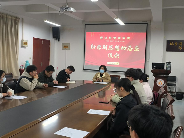 為有效掌握新學期學生思想動態,扎實解決實際問題,進一步提升思想政治教育和學生工作水平,3月4日中午,經濟與管理學院于6棟223會議室召開新學期學生思想動態座談會。黨委副書記夏丹青出席座談會并與各班學生代表進行深入交流。