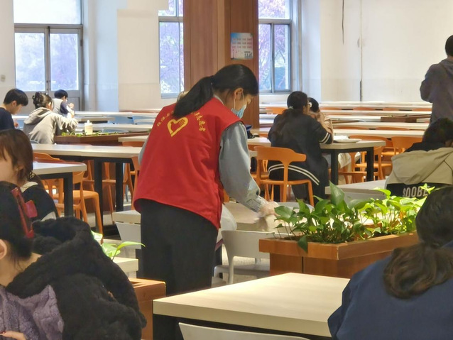 活動當天,青年志愿者們準時來到食堂開展工作。志愿者們分工進行了打湯、清理餐桌、回收餐盤等工作,并協助食堂阿姨用小推車將餐盤送至后廚。志愿活動有序地進行,就餐的師生對志愿者們的服務表示贊賞。