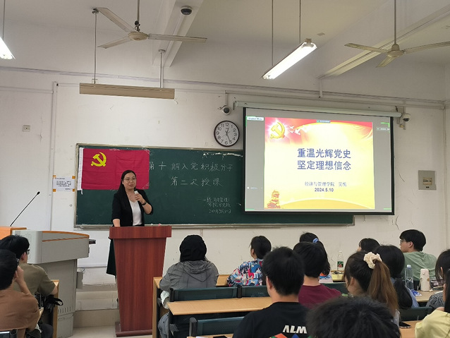 2024年5月10日中午,經(jīng)濟與管理學院分黨校第十期入黨積極分子培訓班第三課在4棟103、107教室同時進行。經(jīng)濟與管理學院黨委副書記、副院長吳悅擔任主講人。經(jīng)濟與管理學院第十期入黨積極分子培訓班全體學員參加學習。
