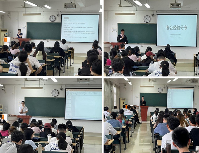 交流會中,丁雯雯介紹了會計專碩各科目的復習方法、備考計劃、院校選擇、作息時間安排等,并給出了針對性的參考建議。程國慶、李駿鵬分別為同學們講解了在備考公務員及事業單位期間應該注意的問題,包括報考區域崗位選擇、筆試面試的題型和方法等,并提醒同學們積極參加校園招聘會,在備考的同時可先與意向單位簽約保底,緩解心理壓力。劉晨陽同學講述了自己報名西部計劃志愿者和面試的經歷,并鼓勵大家去基層建功立業,為人民服務。