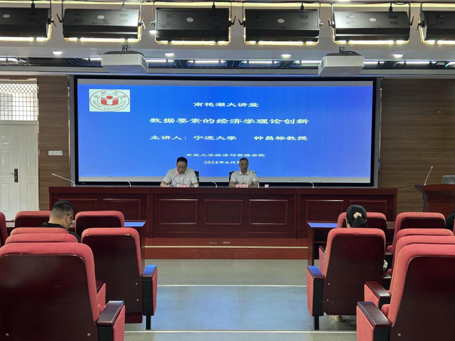6月5日上午,由科研處、經(jīng)濟(jì)與管理學(xué)院主辦的“數(shù)據(jù)要素的經(jīng)濟(jì)學(xué)理論創(chuàng)新”南艷湖大講堂學(xué)術(shù)報(bào)告在6棟一樓學(xué)術(shù)報(bào)告廳進(jìn)行。教育部特聘教授、國(guó)家“百千萬人才工程”人選、寧波大學(xué)商學(xué)院博士生導(dǎo)師鐘昌標(biāo)教授應(yīng)邀作學(xué)術(shù)報(bào)告,經(jīng)濟(jì)與管理學(xué)院院長(zhǎng)陳江華出席并主持,學(xué)院領(lǐng)導(dǎo)及100余位相關(guān)專業(yè)師生共同參與。