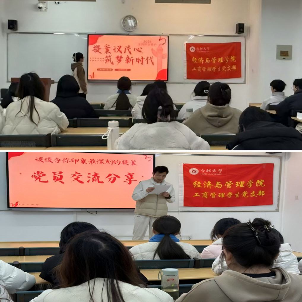 為深入學習貫徹全國兩會精神、激勵青年學子擔當時代使命,3月14日下午,經濟與管理學院工商管理學生黨支部于4棟106教室開展了“提案議民心,筑夢新時代”主題黨日活動。