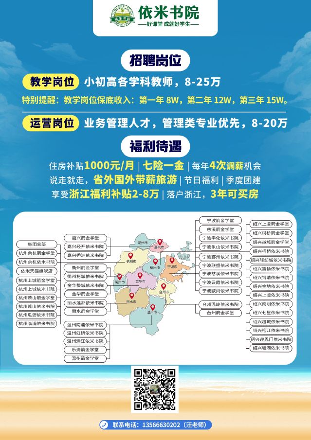 | 宣講會信息 宣講單位:浙江依米教育集團 宣講時間:2021年4月28日 14:00 宣講地點:合肥學院一期4棟會議室 招聘崗位:教學崗位(專業不限)、運營崗位(管理類專業優先) 聯系電話:13566630202(汪老師) | 宣講單位簡介 依米教育集團是由周祚運老師等一群有著教育情懷的教育工作者于2012年4月8日創辦,旗下有“依米書院”和“箭金學堂”兩個業務品牌。依米書院分布在浙江19個城市,擁有34所校區,專注于中小學生學科輔導,自創“ECP”課堂教學模式、“六步教學服務法”,并自主研發《華輝科學》、《依米數學》、《我學我優學習包》,幫助學生提高成績,從而考上更好的學校。箭金學堂與寧波大學、浙江財經大學、浙江工商大學、杭州師范大學、溫州大學、嘉興學院等省內外高校合作開展成人高等學歷教育,擁有20所箭金學堂、天貓商城 “依米旗艦店”,為有志青年提供更加便捷的學歷進修通道。 | 招聘簡章