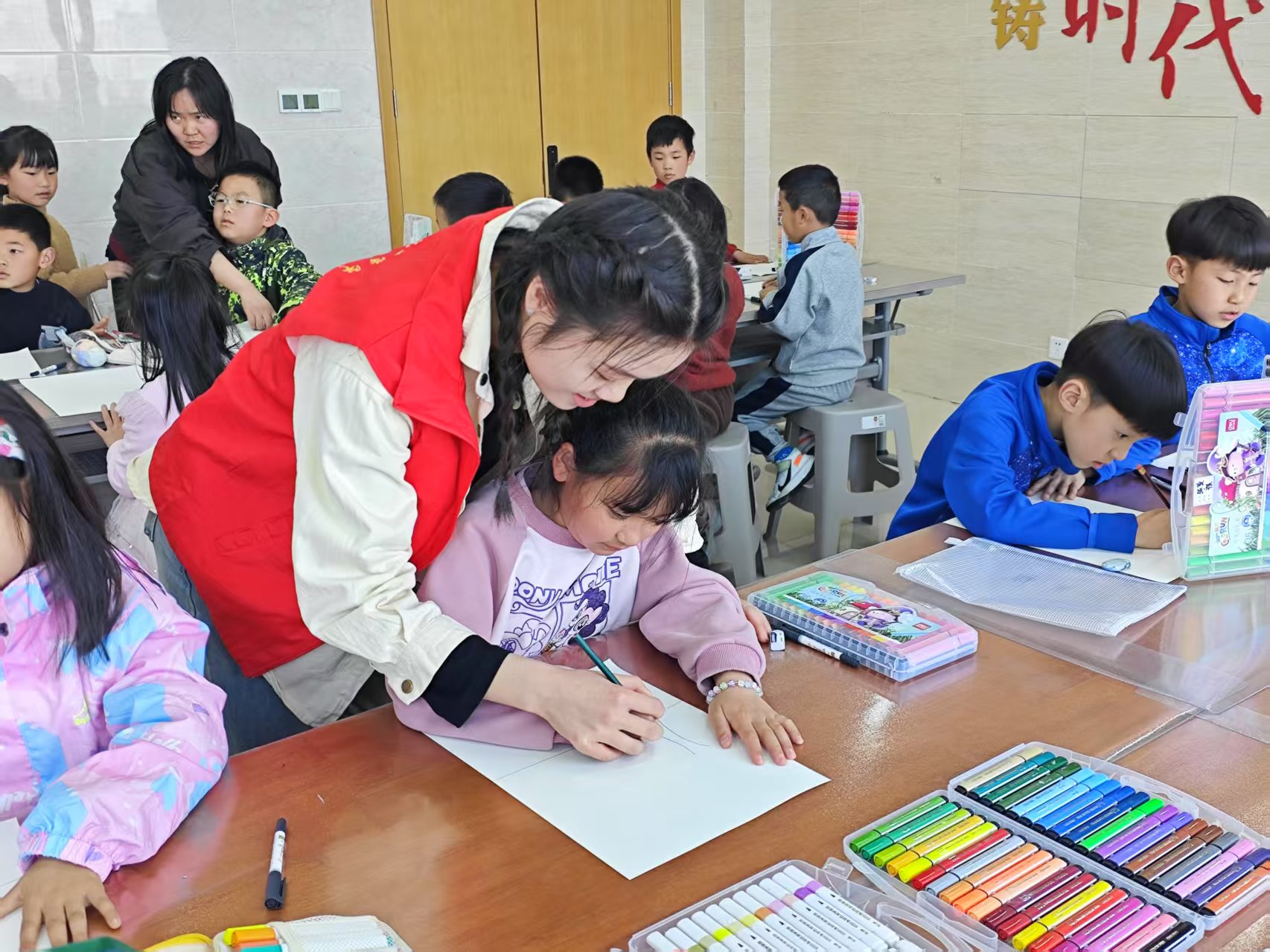 3月22日下午兩點半,在朝霞居委會內,來自合肥大學能源材料與化工學院的2名同學與朝霞居委會的美術老師一起教小朋友學習畫畫,激發了小朋友們對美術的熱情。