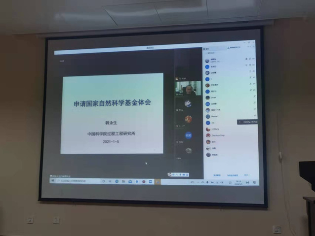 1月5日下午,受材化學院董強院長邀請,中科院過程所韓永生研究員在材化學院學術報告會議室做了“申請國家自然科學基金體會”線上輔導報告會,材化學院鄧崇海副院長主持會議。韓研究員結合自身在科研過程中基金項目申請的切身體會,系統地分享了他在自然科學基金項目書中每一個環節的思考和心得,并從評審專家評價項目書的角度如何提升項目書質量、如何凝練關鍵科學問題提供了意見和建議。韓老師總結了“以科學問題為主線、以研究假說為先導,緊緊圍繞科學問題和研究假說寫申請書的題目、摘要、立項依據、研究內容與研究方案以及自己的研究基礎”的總體基金寫作思路。隨后,青年老師就基金申請方面的一些問題跟韓老師做了進一步的交流與討論,最后,材化學院董強院長做了總結。