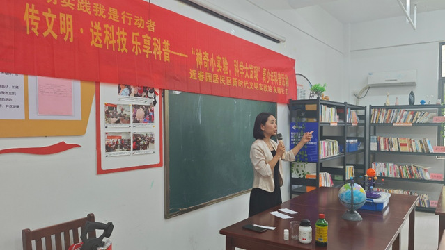 5月19日下午2點,由近春園居委會新時代文明實踐站舉辦的“神奇小實驗,科學大發現”青少年科普實驗活動在綠地濱湖國際花都小區正式召開,能源材料與化工學院“三葉草”志愿隊參與本次活動的志愿服務。