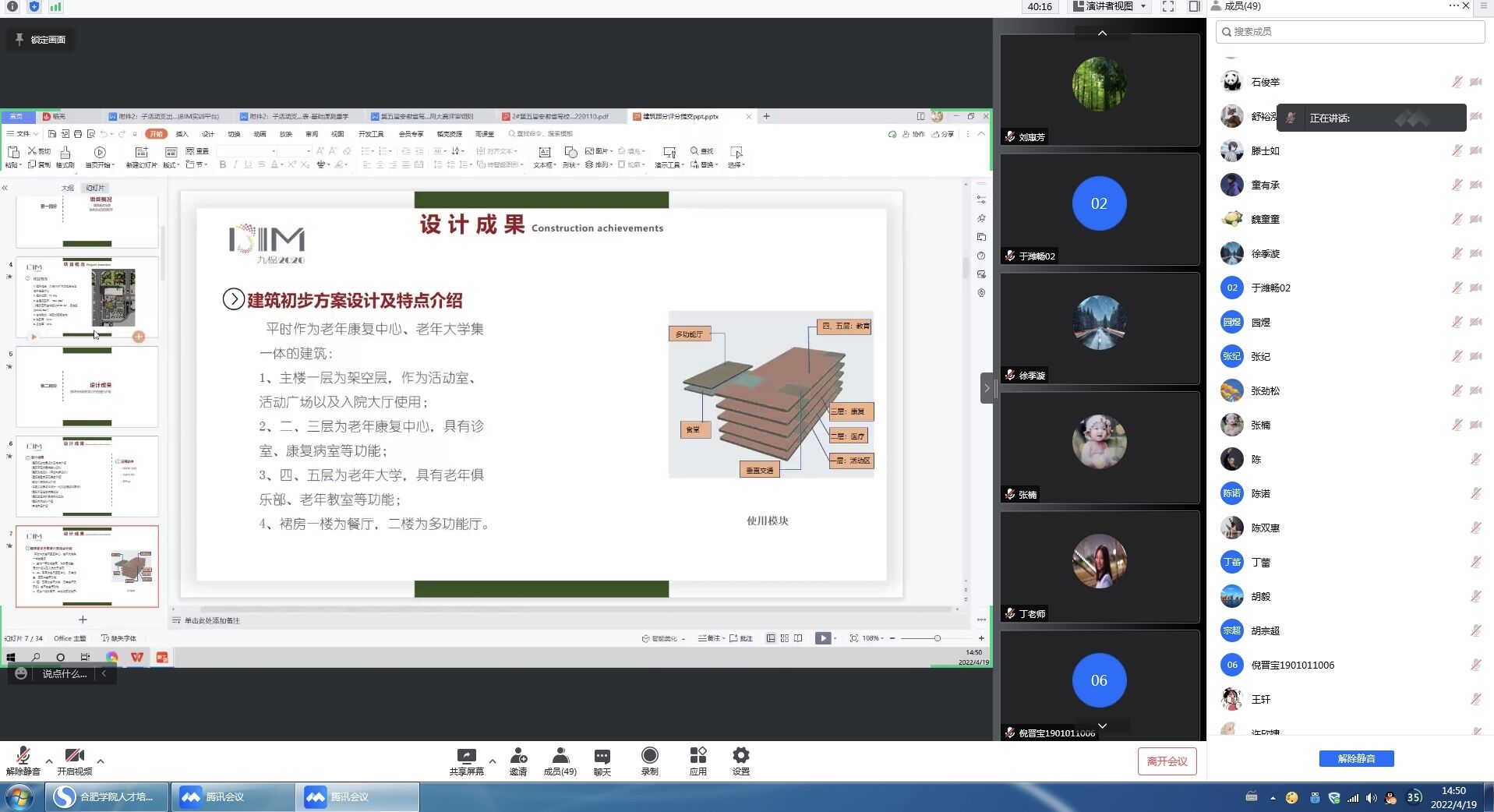 419日下午,城市建設與交通學院邀請校外專家為正在參加第五屆安徽建筑信息模型應用大賽的師生進行線上的專項指導。共有來自十二個專項組的36名學生和24名指導教師參加了此次活動。