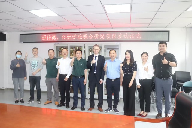 近日,德國西偉德公司與合肥學院簽署技術委托開發協議。合肥學院服務地方辦公室副主任肖新國,城市建設與交通學院院長華建兵,城市建設與交通學院副院長祝磊,西偉德公司總經理Klaus Bourquin,研發經理賈曉輝,公共事務經理林清辰,人事行政經理彭麗參加簽約儀式。會議由城市建設與交通學院副院長祝磊主持。