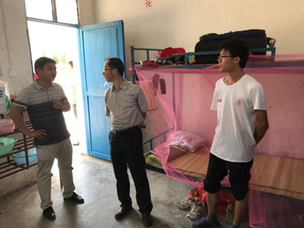 在我校駐陡張村第一書記張偉頎老師的陪同下,洪家友書記一行來到了機械系志愿者們所在的陡張小學,詳細向志愿者們詢問住宿、伙食等基本情況,聽取實踐隊隊長李瑾介紹了實踐活動的基本內容,仔細查看了志愿者們的宿舍。每到一處,洪家友書記和志愿者們親切握手,詢問生活、活動開展等情況,洪家友強調,志愿者們在保持安全的前提下,要保證每天攝入足夠的營養,才能更好地開展實踐志愿活動;指出此次“三下鄉”實踐活動方案設計合理,內容充實可行,特別對支教活動中小朋友們上下學安全保障的模式表示肯定。最后,洪家友書記一行對本次實踐志愿活動給予美好祝愿,希望志愿者們能在實踐中多鍛煉,真提升。據悉,機械工程系2017年“三下鄉”暑期社會實踐服務隊將在陡張圍繞介紹了2017年我系赴安徽泗縣瓦房陡張村將圍繞黨建進基層(協助村基層黨支部標準化建設)、留守兒童假期安全教育(安全大講堂)、農村信息化建設(計算機知識普及、網絡使用教授等)、文化下鄉(紅色電影展播)、貧困狀況調研(協助駐村干部)、義務支教(陡張中心小學學生假期學習)等多個主題開展八天的志愿服務活動。目前該團隊時間的各項內容按照方案在有條不紊地順利開展,受到了當地居民群眾的好評。