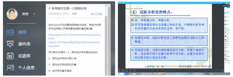 作者簡介:章蕾,經(jīng)濟與管理學院講師?!段⒂^經(jīng)濟分析》等多個省級MOOC項目主要參與人。互動式教學不應只體現(xiàn)在課中,課前和課后也是兩個非常重要的環(huán)節(jié),加強課前教師指導和課后溝通是保證課中互動效果的重要條件。課前、課后和課中是個完整的教學過程,相比線下教學,在線教學利用現(xiàn)代信息化技術手段開展互動式教學似乎更加便捷和高效。