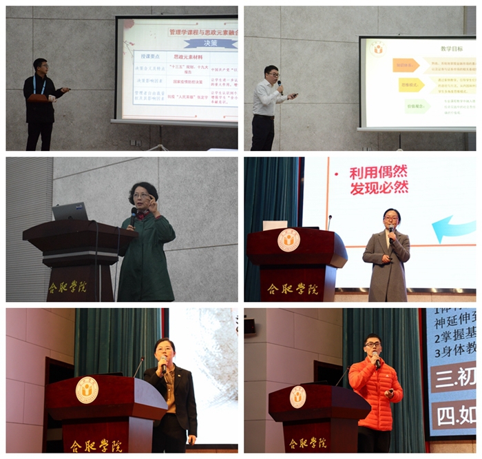此次教學(xué)大賽分學(xué)院初賽和學(xué)校決賽,經(jīng)過各教學(xué)單位初賽和推薦,共35名教師晉級決賽。大賽分文科組和理科組分別進行,參賽課程包含基礎(chǔ)課、專業(yè)課等各類課程,涵蓋了理學(xué)、工學(xué)、文學(xué)、管理等多個學(xué)科。各參賽教師精心準(zhǔn)備,從自己的學(xué)科特點出發(fā),深入挖掘了各門課程蘊含的思政元素和所承載的育人功能,分別從說課和教學(xué)展示兩部分進行了闡述,既講解專業(yè)知識,又啟迪學(xué)生做人做事的人生道理,把思想政治教育的內(nèi)涵恰到好處地融入到課堂教學(xué)中,現(xiàn)場氣氛活潑熱烈,選手的精彩表現(xiàn)不時贏得現(xiàn)場觀眾的陣陣掌聲。經(jīng)過激烈角逐與評審,共評出一等獎2名、二等獎4名、三等獎9名,優(yōu)秀組織獎2個。