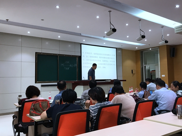 為了貫徹落實習(xí)近平總書記5月2日在北京大學(xué)師生座談會發(fā)表的重要講話精神和6月21日召開全國高等學(xué)校本科教育工作會議精神,凝聚教研室的教學(xué)熱情,進(jìn)一步激發(fā)專業(yè)負(fù)責(zé)人在教學(xué)工作中的主動性、創(chuàng)造性、積極性。同時檢驗我校教學(xué)改革成效,夯實專業(yè)改革、教學(xué)管理體制機制,特別是落實立德樹人根本任務(wù),堅持以本為本、推進(jìn)四個回歸方面的成效。6月29日,在我校35號樓312錄播教室,舉行了專業(yè)負(fù)責(zé)人2017年度工作考核匯報會。