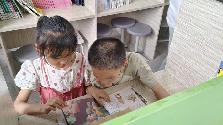 “孩子們,我們為什么要閱讀書籍呢?因為閱讀是開啟我們認識世界的一扇窗,讓我們能夠看到外面世界的精彩之處。”團隊成員向孩子們介紹。在活動中,團隊成員帶領孩子們走進閱覽室,通過對書架上琳瑯滿目書籍的講解和推薦,引導孩子們主動閱讀,并教給孩子們基本的閱讀方法。