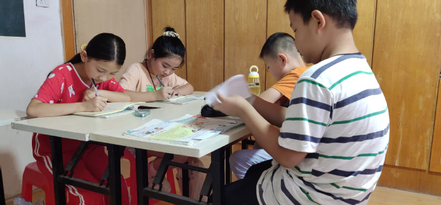 七月受暴雨影響合肥廬江縣發生嚴重洪澇災害,部分地區受災群眾進行統一轉移安置,很多孩子在安置點缺乏良好的學習環境,課業進度一度落下。教育學院三下鄉團隊經院團委同意,在廬江縣臨時開辟一支分隊,由隊員劉慧帶領,組建了三下鄉“廬江小課堂”志愿服務隊。志愿者們集合了附近因洪澇災害耽誤學業的中小學生統一在自家閑置的空房里為孩子們輔導作業,盡力為孩子們提供良好的學習條件和師資幫助