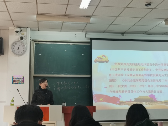 11月25日中午12點25分,教育學院入黨積極分子培訓班第八次黨課在3棟101教室如期舉行。此次黨課主講人為合肥學院黨委組織部姚娜老師。