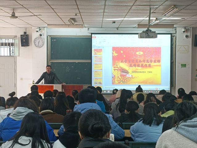 11月23日中午,教育學院于3棟101舉行第十九期入黨積極分子培訓班第五次黨課培訓學習。合肥學院黨委巡察辦丁增云老師受邀擔任本次黨課的主講人。