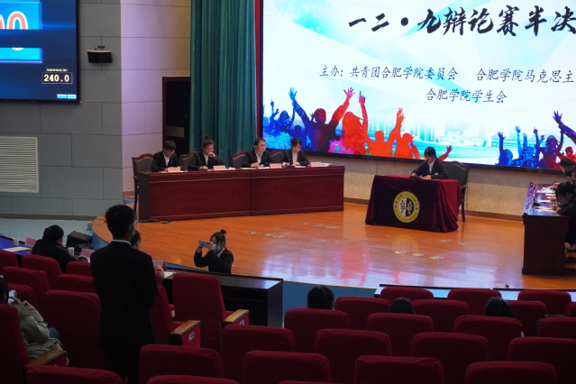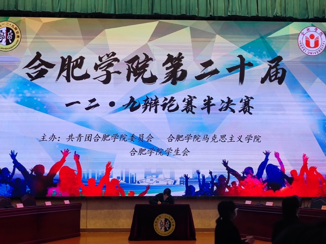 為了豐富學生的課余生活,增強學生邏輯思維和語言表達能力,提高學生的辯論水平,由校團委主辦的合肥學院第二十屆一二·九辯論賽半決賽于11月29日晚7:30在圖書館報告廳A舉行。擔任此次比賽的評委有馬克思主義學院李繼友老師、黃瑩瑩老師、魏亞老師。