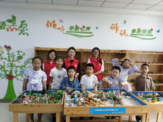 5月27日上午,教育學院陽光心志隊赴欣園社區為社區兒童開展心理沙盤輔導活動。本次活動旨在深入推進社區兒童心理健康教育工作,有效幫助兒童疏導情緒,提高認知能力,充分發揮兒童的想象力、邏輯思考能力、言語表達能力,并讓廣大兒童形成樂觀積極的心態,提高他們的團隊合作意識。 活動伊始,志愿者們簡要介紹了心理沙盤的意義、操作規則及活動的注意事項。隨后,在志愿者的組織下,孩子們在安全且自由的空間中,選取符合自己內心特征的沙具并按照自己內心的想法將沙具擺放好,感受內心意識的流動與交互,通過沙具和沙粒的結合,在沙盤中表達內心。最終經過長達四十分鐘的擺放,孩子們完成了各自的沙盤作品。接下來,孩子們依次分享自己沙盤創作的想法和所要表達的意義,說出沙盤作品中最能觸動自己的地方,在交流與討論中,孩子們發現了自己內心的閃光點,從而增加了自信,更加肯定了自己。活動結束后,志愿者們根據每個孩子在活動中的表現,適當地向家長們提出了教育方式、溝通技巧等方面的建議,幫助家長們讀懂孩子的內心世界,促進親子關系和諧發展。