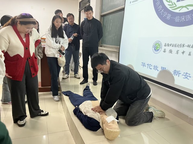 在實(shí)操模擬演練中,團(tuán)隊(duì)成員現(xiàn)場(chǎng)展示心肺復(fù)蘇的詳細(xì)歩驟,并且邀請(qǐng)同學(xué)親自體驗(yàn),現(xiàn)場(chǎng)指導(dǎo)同學(xué)們,幫助大家熟練掌握急救技能。高主任和團(tuán)隊(duì)成員們把枯燥乏味的醫(yī)學(xué)知識(shí),轉(zhuǎn)換成既規(guī)范又充滿趣味的內(nèi)容,用通俗易懂的語(yǔ)言,生動(dòng)地講解心肺復(fù)蘇、海姆立克等急救技能,幫助大家普及相關(guān)急救知識(shí)。