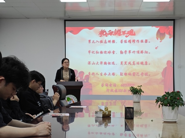 為響應國家征兵號召,鼓勵大學生投身國防事業,生物食品與環境學院于5月23日上午十點半在生化樓三樓會議室成功舉辦“熱血鑄軍魂——2025年征兵政策宣講會”。本次宣講會由學生處國防動員科科長鄭國平主講,生物食品與環境學院黨委副書記晉松及部分學生參加。