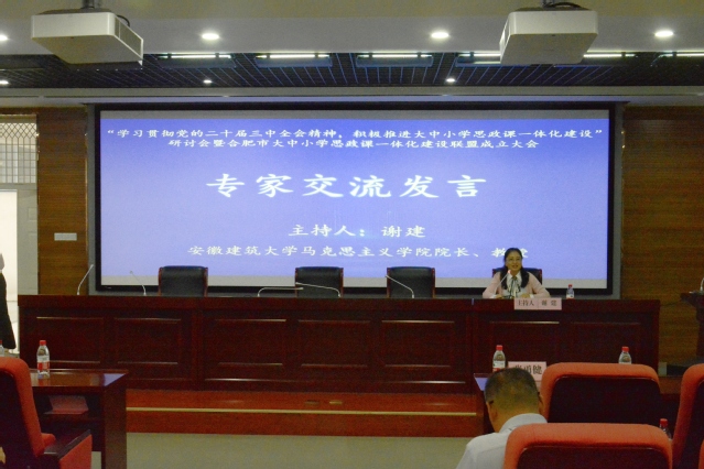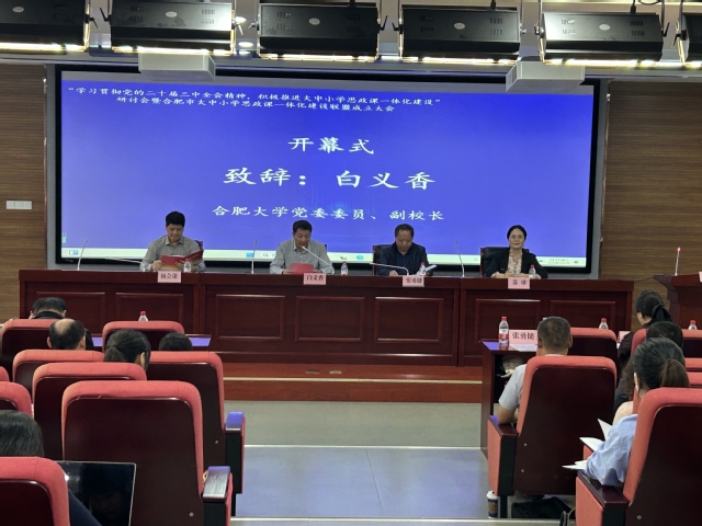 10月16日下午,“學(xué)習(xí)貫徹黨的二十屆三中全會精神,積極推進(jìn)大中小學(xué)思政課一體化建設(shè)”研討會暨合肥市大中小學(xué)思政課一體化建設(shè)聯(lián)盟成立大會在我校成功舉行。此次會議由合肥大學(xué)、合肥市教育局、合肥經(jīng)濟(jì)技術(shù)開發(fā)區(qū)社會發(fā)展局共同舉辦,合肥大學(xué)馬克思主義學(xué)院承辦。校黨委委員、副校長白義香,合肥市教育局教育科學(xué)研究院副院長張勇健,合肥經(jīng)濟(jì)技術(shù)開發(fā)區(qū)社會發(fā)展局副局長楊會謙出席并致辭合肥工業(yè)大學(xué)、安徽農(nóng)業(yè)大學(xué)、安徽建筑大學(xué)等高校及合肥市屬大中小學(xué)領(lǐng)導(dǎo)專家學(xué)者和教師代表110余人參加研討會。會議由馬克思主義學(xué)院直屬黨支部書記、副院長蘇冰主持。
