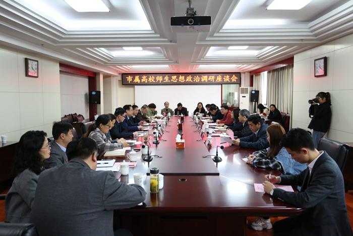 隨后,在行政樓九樓東會(huì)議室召開(kāi)了高校師生思想政治調(diào)研座談會(huì),校黨委書(shū)記蔡敬民主持會(huì)議。副校長(zhǎng)劉建中、黨委宣傳部部長(zhǎng)劉樟樹(shù)、學(xué)工部部長(zhǎng)董承軍、教務(wù)處處長(zhǎng)王曉峰以及師生代表與會(huì)。