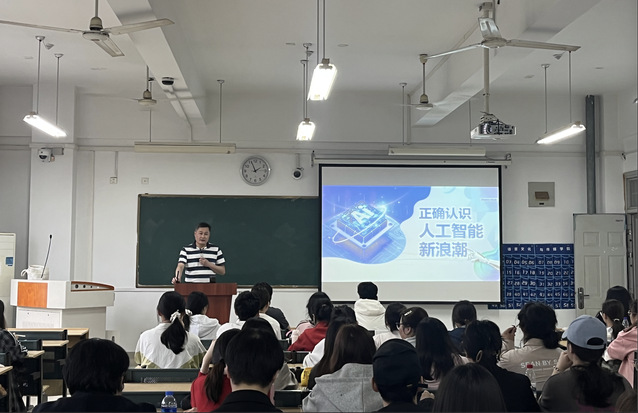 王曉峰“正確認(rèn)識人工智能新浪潮”為主題,從認(rèn)清發(fā)展態(tài)勢、應(yīng)用走深走實、筑牢發(fā)展優(yōu)勢三個方面進(jìn)行深入講解,幫助學(xué)生深入了解當(dāng)前人工智能發(fā)展的趨勢,引導(dǎo)學(xué)生進(jìn)一步增強(qiáng)對實現(xiàn)高水平科技自立自強(qiáng)的信心。他鼓勵同學(xué)們培養(yǎng)數(shù)字技能,投身創(chuàng)新實踐在堅守人文精神的同時提升自身競爭力。授課過程中,王曉峰結(jié)合自身研究專長和前沿視角,以鮮活的實踐案例和生動的語言表達(dá),為同學(xué)們帶來一堂精彩的思政課,引發(fā)了學(xué)生思想共鳴。