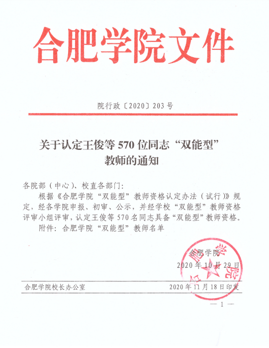 2020年10月29日,經學校認定,我院胡艷萍、黃瑩瑩、蘇冰、閃茜菁、金麗、郭劍峰、謝敏芳、陳愛娟、詹玉華、楊立平、彭永東、費維斌、杜娟、梅志強等14名同志獲得“雙能型”教師資格。(馬克思主義學院)