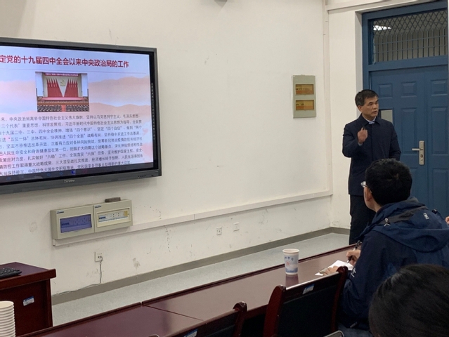 1月5日下午,副校長盧平在41棟505教室為城市建設與交通學院所有學生黨員上了一堂生動的黨課,受到同學們的熱烈歡迎。報告由城市建設與交通學院黨委書記胡曉軍主持。