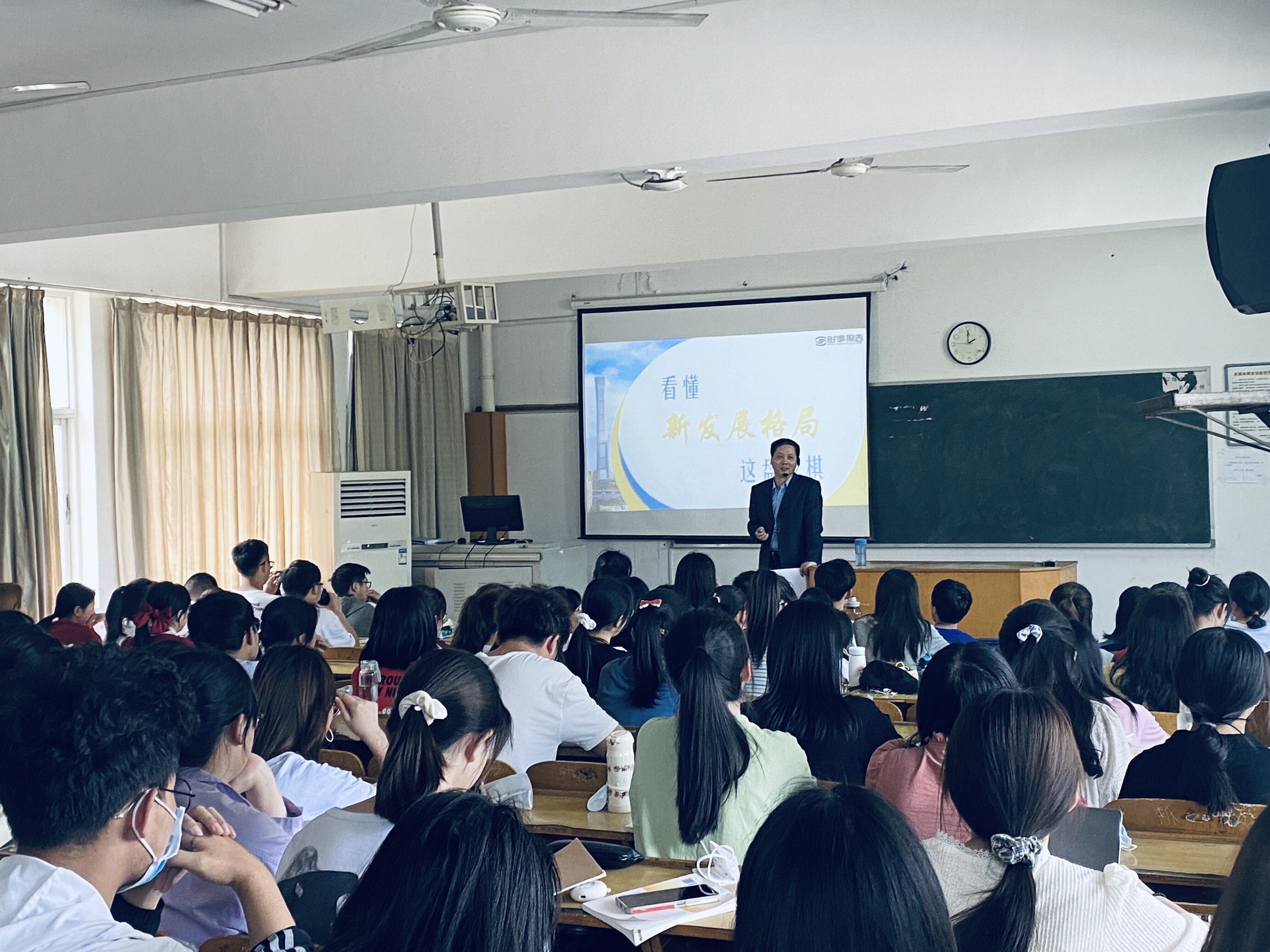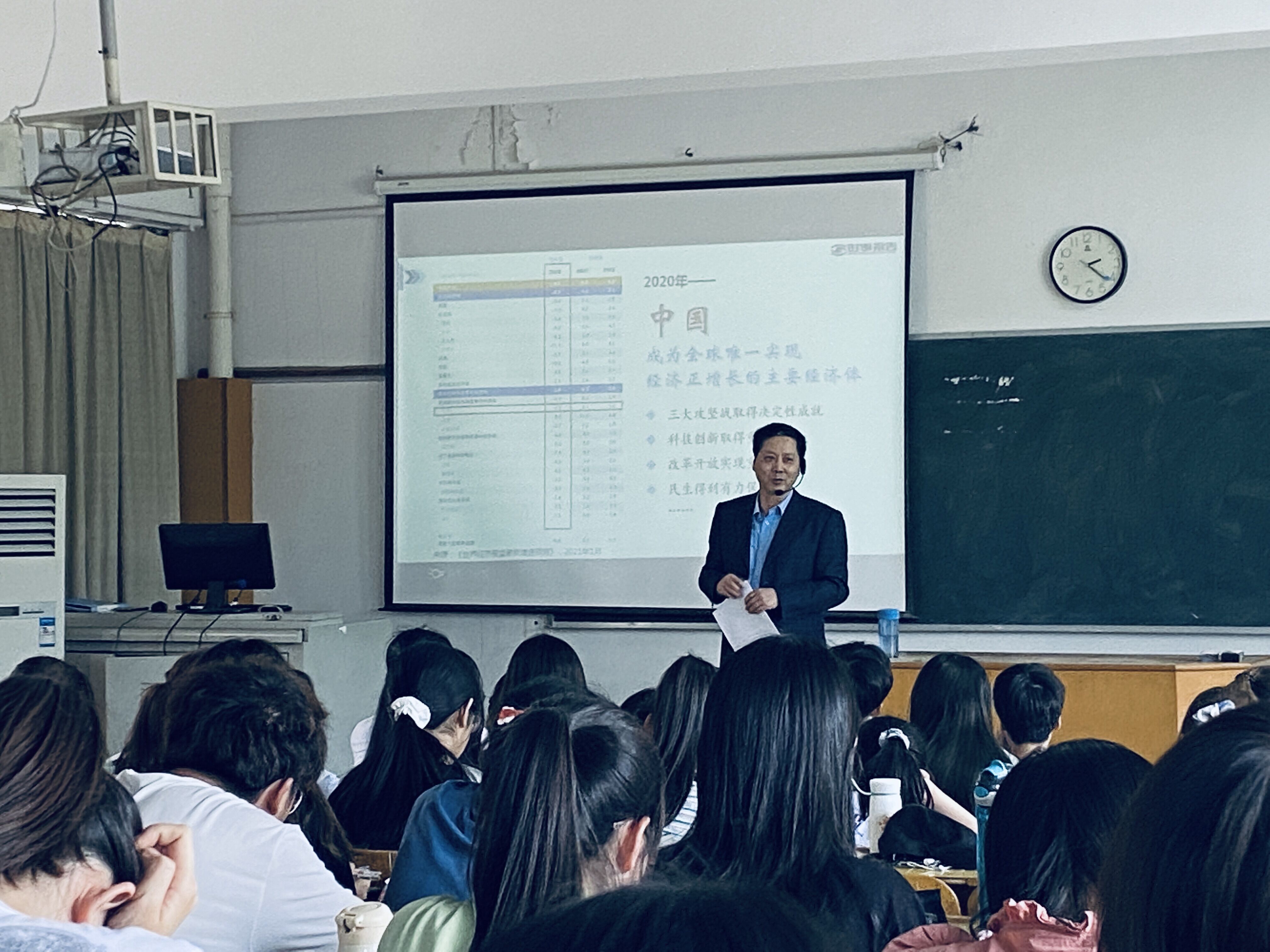 2021年5月25日下午,校黨委副書記劉建中教授在11棟103教室以“看懂新發(fā)展格局這盤大棋”為題,為20級(jí)日語(yǔ)、20級(jí)德語(yǔ)和20級(jí)新聞專業(yè)的本科生講授了一次精彩的“形勢(shì)與政策”課。