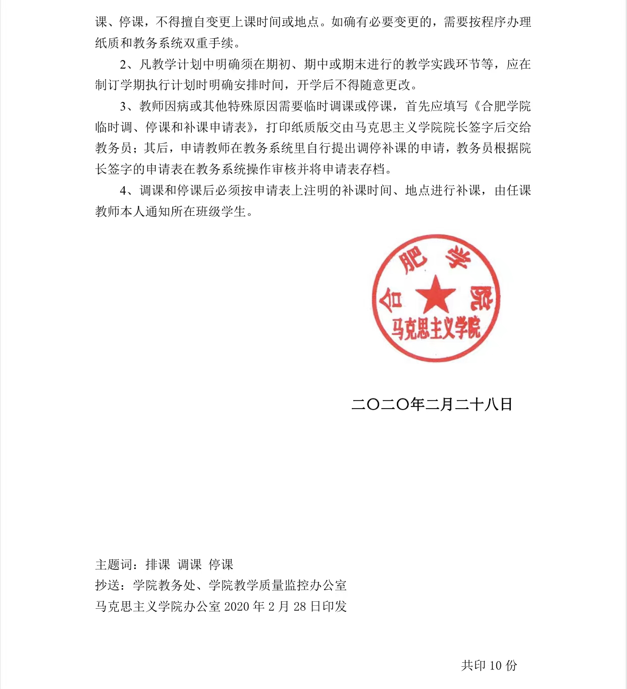 關(guān)于排課、調(diào)課、停課規(guī)定(馬院〔2020〕3號(hào))