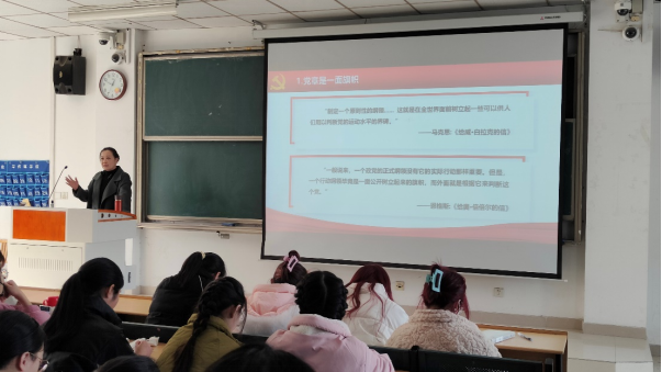 饒睿為外國語學院、教育學院、旅游與會展學院 入黨積極分子解讀新《黨章》 12月2日,外國語學院、教育學院、旅游與會展學院分黨校第二次線下集中授課在5-101順利開展。馬克思主義學院饒睿老師應邀為全體積極分子講授了一堂題為“深刻領會二十大黨章修正案的重大意義與重要內容——《中國共產黨章程》解讀”的黨課。