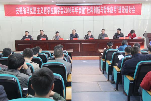 2016114日至5日,安徽省馬克思主義哲學應用學會2016年年會暨“社科創新與哲學應用”理論研討會在安徽科技學院召開。安徽科技學院黨委書記蔣德勤教授,學會會長、安徽工業大學黨委書記劉新躍教授,學會常務副會長、安徽電氣工程職業技術學院原院長陳祥明教授,學會副會長、滁州學院原黨委副書記倪陽,學會副會長、合肥工業大學馬克思主義學院院長黃志斌教授,學會副會長、秘書長、安徽農業大學馬克思主義學院院長黃洪雷教授,學會副會長、合肥工業大學任雪萍教授,學會副會長、安徽科技學院馬克思主義學院院長王有煒教授等出席開幕式并在主席臺就坐。來自全省高校、社科院所、黨政機關的60多位專家學者參加了此次會議。開幕式由黃洪雷主持。思想政治理論課教學部金麗老師參加了會議。