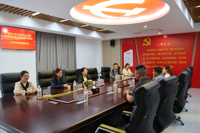 蘇冰首先介紹了合肥大學馬克思主義學院的發展情況,計劃今后帶領學生到小井莊紀念館開展實踐教學,同時加強對小井莊精神的研究和宣傳。霍宇東介紹了肥西縣三河文旅發展有限公司的相關情況,表示將為我校思想政治理論課實踐教學提供教育場所和講解服務,對教師相關研究提供支持。雙方在小井莊精神的宣傳與研究方面達成高度共識,希望建立長期合作關系。最后,霍宇東與蘇冰共同為合肥大學馬克思主義學院思想政治理論課實踐教學基地揭牌。