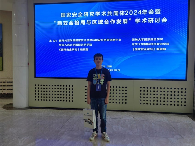 2024年7月4至7日,由國際關系學院、國防大學國家安全學院、中國人民大學國際關系學院和遼寧大學主辦的國家安全研究學術共同體2024年會暨“新安全格局與區(qū)域合作發(fā)展”學術研討會在遼寧沈陽舉辦。我院教師陶德強受邀參會,并在分論壇分享研究成果。