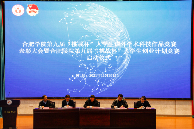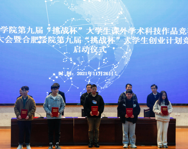 王玉代表合肥學院第九屆“挑戰杯”大學生課外學術科技作品競賽組委會全面總結了2021年我校組織師生參賽的總體情況和取得成績。宣傳報名期間,我校舉辦了多場“挑戰杯”培訓會、專家講座和歷屆獲獎作品備賽及答辯經驗分享會等活動,營造了良好的參賽氛圍。校賽報名階段共收集395項作品申報材料,30件作品進入校決賽,10件作品推薦參加安徽省省賽,最終獲得省一等獎1項、二等獎8項、三等獎1項,同時,我校作品參加專項賽獲得紅色專項安徽省二等獎1項,三等獎4項,獲得全國黑科技專項賽“衛星”級作品1項,學校榮獲全省挑戰杯優秀組織獎。
