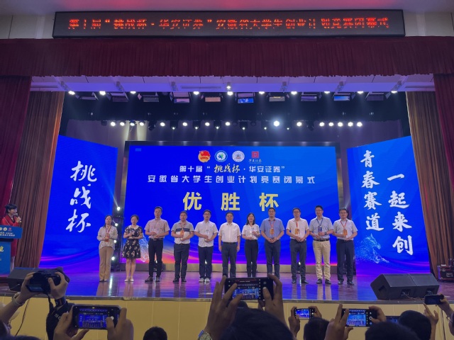 6月16日,由共青團(tuán)安徽省委員會(huì)、安徽省教育廳、安徽省人力資源和社會(huì)保障廳、安徽省科學(xué)技術(shù)協(xié)會(huì)、安徽省學(xué)生聯(lián)合會(huì)主辦的第十屆“挑戰(zhàn)杯·華安證券”安徽省大學(xué)生創(chuàng)業(yè)計(jì)劃競(jìng)賽在安徽工業(yè)大學(xué)落下帷幕。今年大賽參賽項(xiàng)目數(shù)再創(chuàng)新高,我校學(xué)生創(chuàng)業(yè)項(xiàng)目與來自省內(nèi)123所高校的1237個(gè)項(xiàng)目同臺(tái)競(jìng)技,經(jīng)過激烈的角逐,最終斬獲金獎(jiǎng)2項(xiàng),銀獎(jiǎng)6項(xiàng),銅獎(jiǎng)10項(xiàng),我校獲得優(yōu)勝杯。