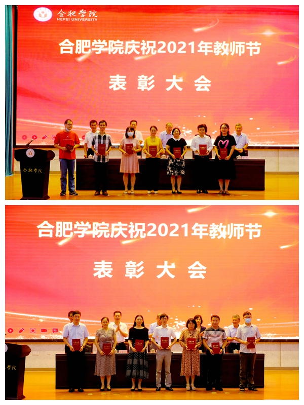 校領導為合肥學院首屆“我最喜愛的教師”獲獎人員、首屆“教學創新大賽”獲獎代表、第十一屆青年教師教學(創新)競賽獲獎教師代表、2019-2020年“三育人”和“師德建設”先進個人代表、“光榮從教30年”代表、2020年全省大中專學生志愿者暑期“三下鄉”社會實踐活動“優秀個人”獲獎代表、“安徽省高校餐飲系統疫情防控工作先進集體”獲獎單位、“安徽省脫貧攻堅先進個人”獲獎代表、第九屆“挑戰杯”安徽省大學生課外學術科技作品競賽指導教師獲獎代表、2020年安徽省質量工程獲獎代表、安徽省教科文衛體系統“師德先進個人”獲獎人員、安徽省科學技術獎獲獎代表、吉林省科學技術獎獲獎人員、廣西壯族自治區科學技術獎獲獎代表、第十二屆“挑戰杯”全國大學生創業計劃競賽指導教師獲獎代表、安徽省“教書育人楷模”等60余名教師頒獎。