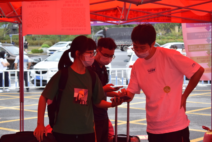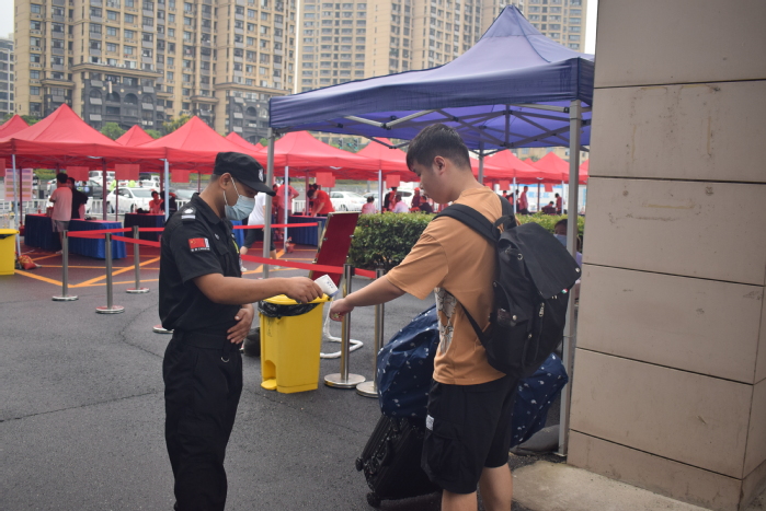 返校當(dāng)日,負(fù)責(zé)入校通道的教職工、學(xué)生志愿者早早來到現(xiàn)場(chǎng),按照疫情防控有關(guān)要求,為返校學(xué)生進(jìn)行體溫檢測(cè)、行李消殺、查驗(yàn)“安康碼”“行程碼”和48小時(shí)內(nèi)核酸檢測(cè)陰性報(bào)告,流程環(huán)環(huán)相扣,現(xiàn)場(chǎng)井井有條。校領(lǐng)導(dǎo)親切看望學(xué)生、慰問一線工作人員,詳細(xì)詢問各單位新學(xué)期各項(xiàng)工作準(zhǔn)備,了解學(xué)生返校工作流程和各環(huán)節(jié)運(yùn)行情況,并前往重點(diǎn)區(qū)域場(chǎng)所進(jìn)行了實(shí)地察看和現(xiàn)場(chǎng)指導(dǎo),檢查環(huán)境清潔、防疫物資儲(chǔ)備等各項(xiàng)情況。