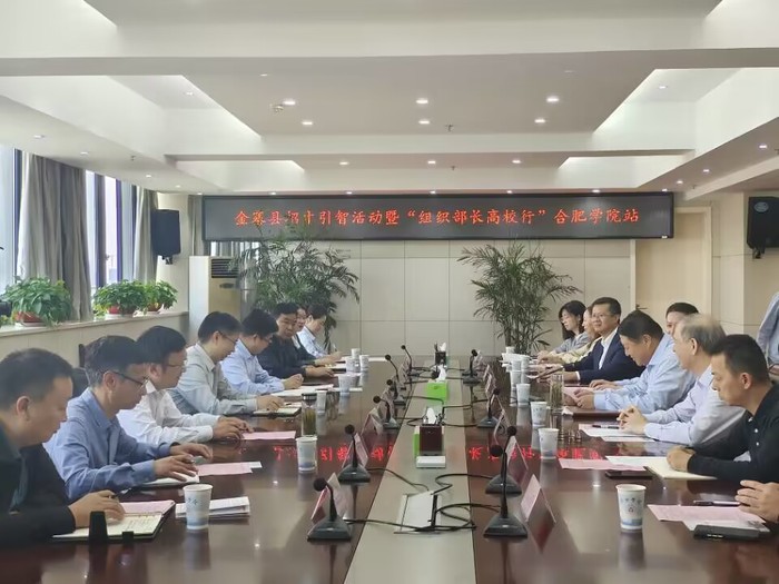 11月3日上午,金寨縣委副書記胡勁松,縣委常委、組織部部長倪秀鋒一行來我校開展招才引智暨“組織部長高校行”活動。省教育廳副廳長解平到會指導,校黨委書記王其東、黨委副書記劉建中出席會議,學生處、先進制造工程學院、人工智能與大數(shù)據(jù)學院相關負責人參加會議。