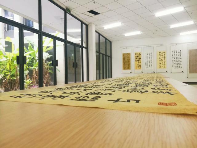 本次展覽將持續到68日。參展的美術作品有寫意山水、寫意花鳥作品,也有工筆山水、花鳥作品;書法作品有篆、隸、楷、行、草等,條幅、對聯、斗方、中堂、橫幅等形式俱備;攝影作品有校園風光、人物寫真等形式。作品集中展現了校園五月的生機和活力、寧靜與和諧。師生日常工作學習中的樓宇、湖泊亦或者是路邊的綠樹,都成為了大家創作的素材