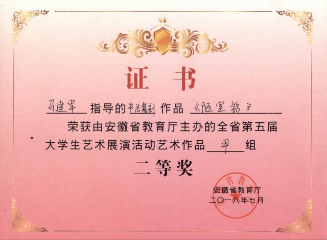 日前,由安徽省教育廳主辦的安徽省第五屆大學生藝術展演活動圓滿落幕。我校師生作品參與全省現場展演并喜獲佳績,共獲國家級二等獎1項、省級一等獎7項、省級二等獎6項,省級三等獎6項。